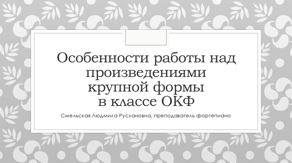 Особенности работы над произведениями крупной формы в классе ОКФ
