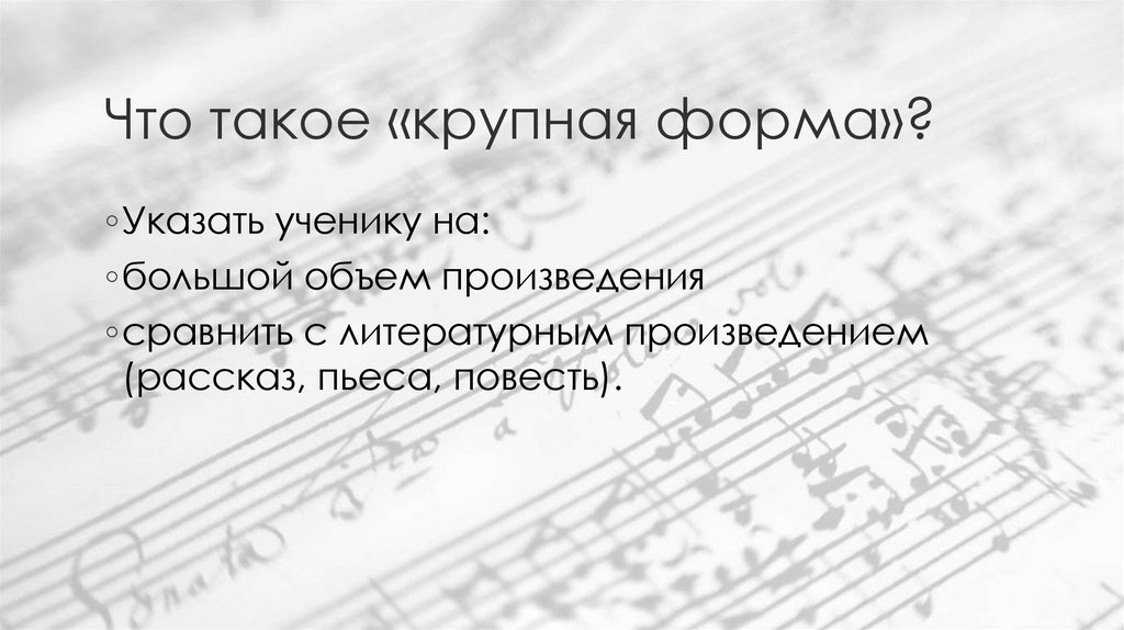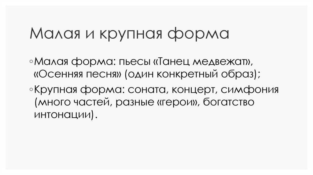 Малая и крупная форма◦Малая форма: пьесы «Танец медвежат»,