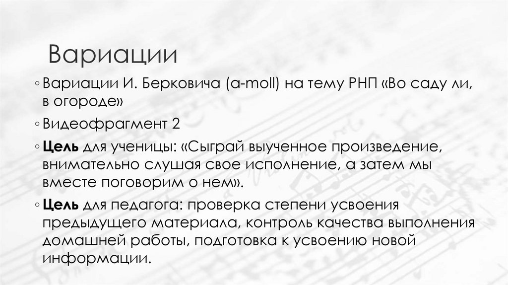 Вариации◦ Вариации И. Берковича (a-moll) на тему РНП «Во саду ли,