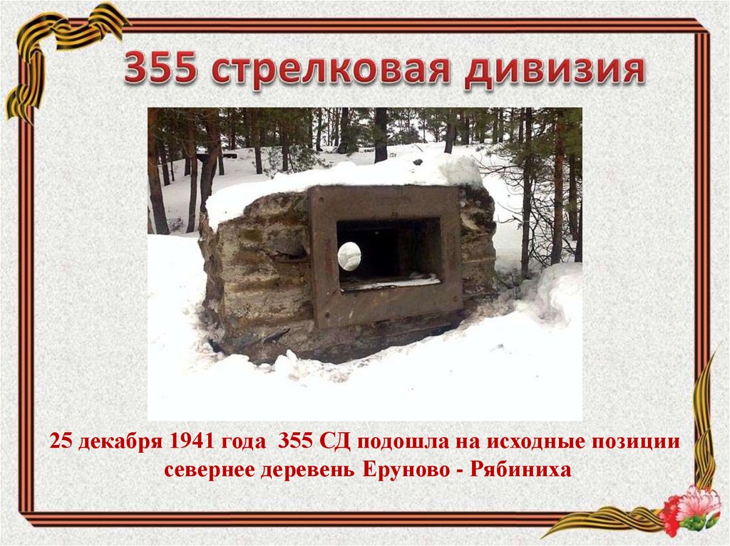 25 декабря 1941 года 355 СД подошла на исходные позициисевернее деревень Еруново - Рябиниха