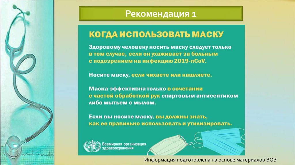 Рекомендация 2Информация подготовлена на основе материалов ВОЗ