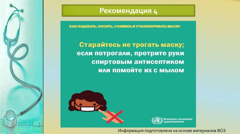 Рекомендация 4Информация подготовлена на основе материалов ВОЗ