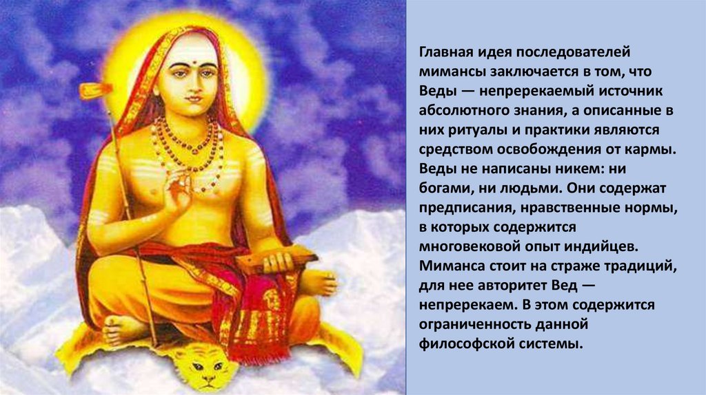 Главная идея последователеймимансы заключается в том, что