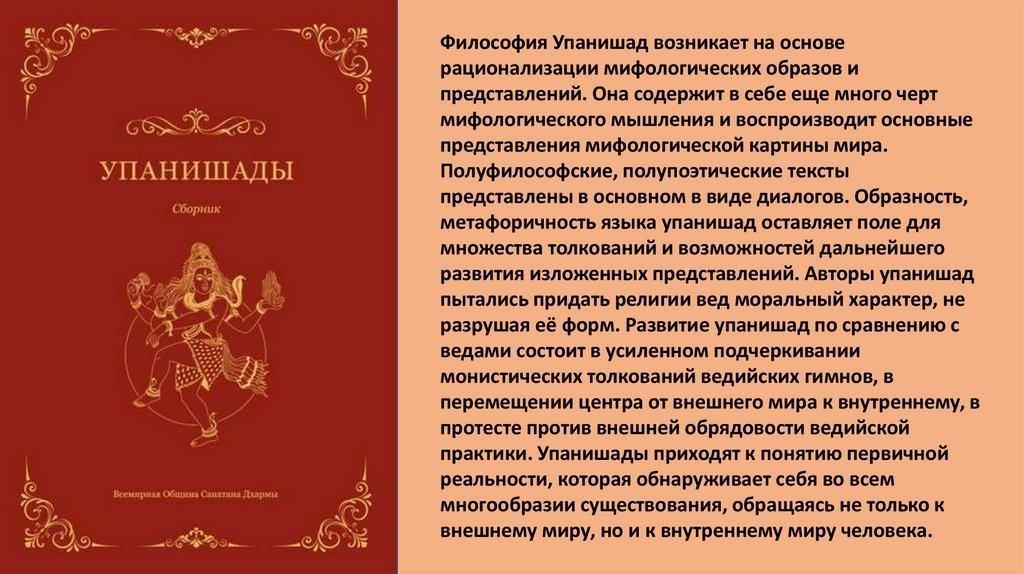 Философия Упанишад возникает на основерационализации мифологических образов и