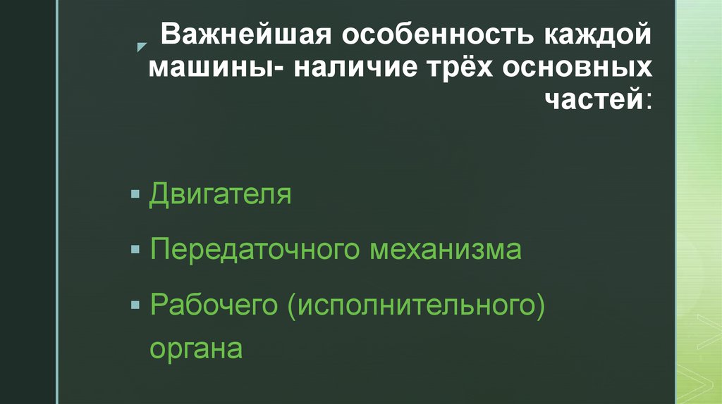 Важнейшая особенность каждоймашины- наличие трëх основных