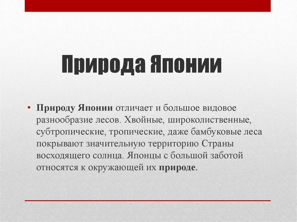 Природа Японии• Природу Японии отличает и большое видовое