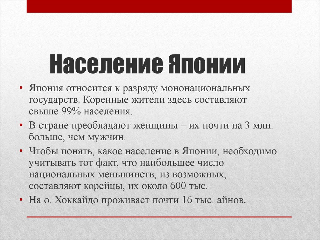 Население Японии• Япония относится к разряду мононациональных