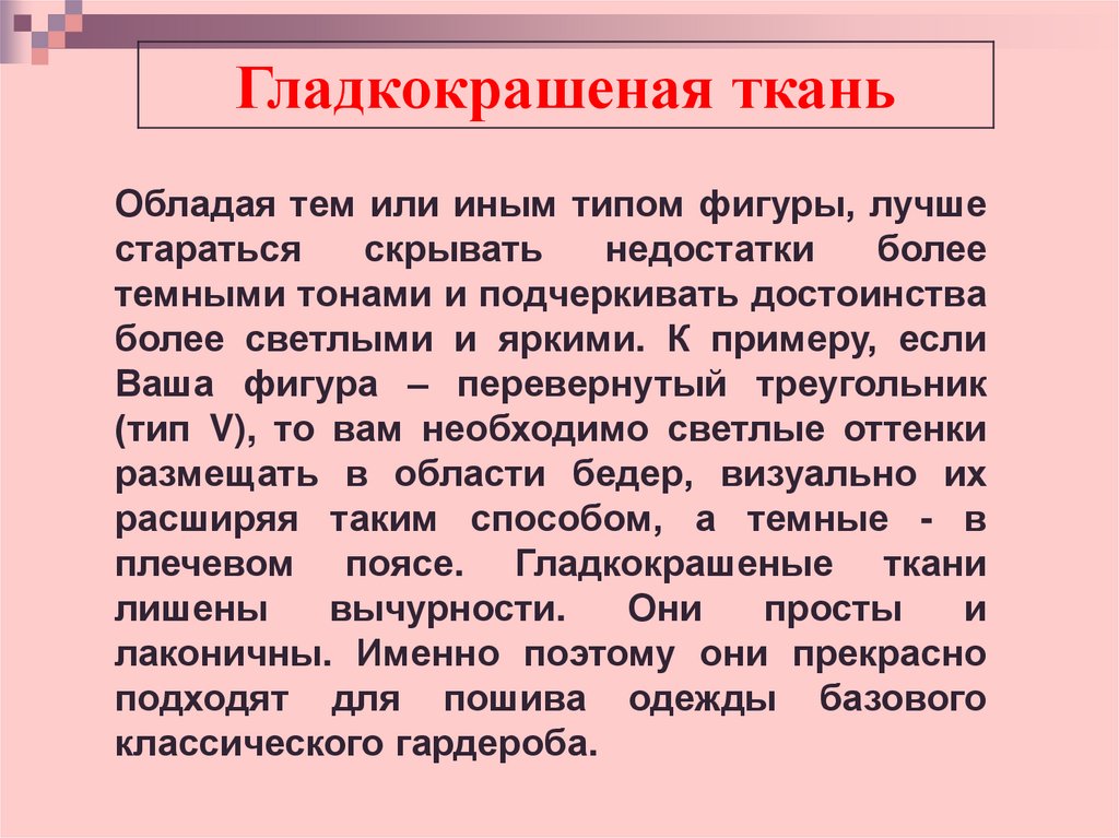 Гладкокрашеная тканьОбладая тем или иным типом фигуры, лучше