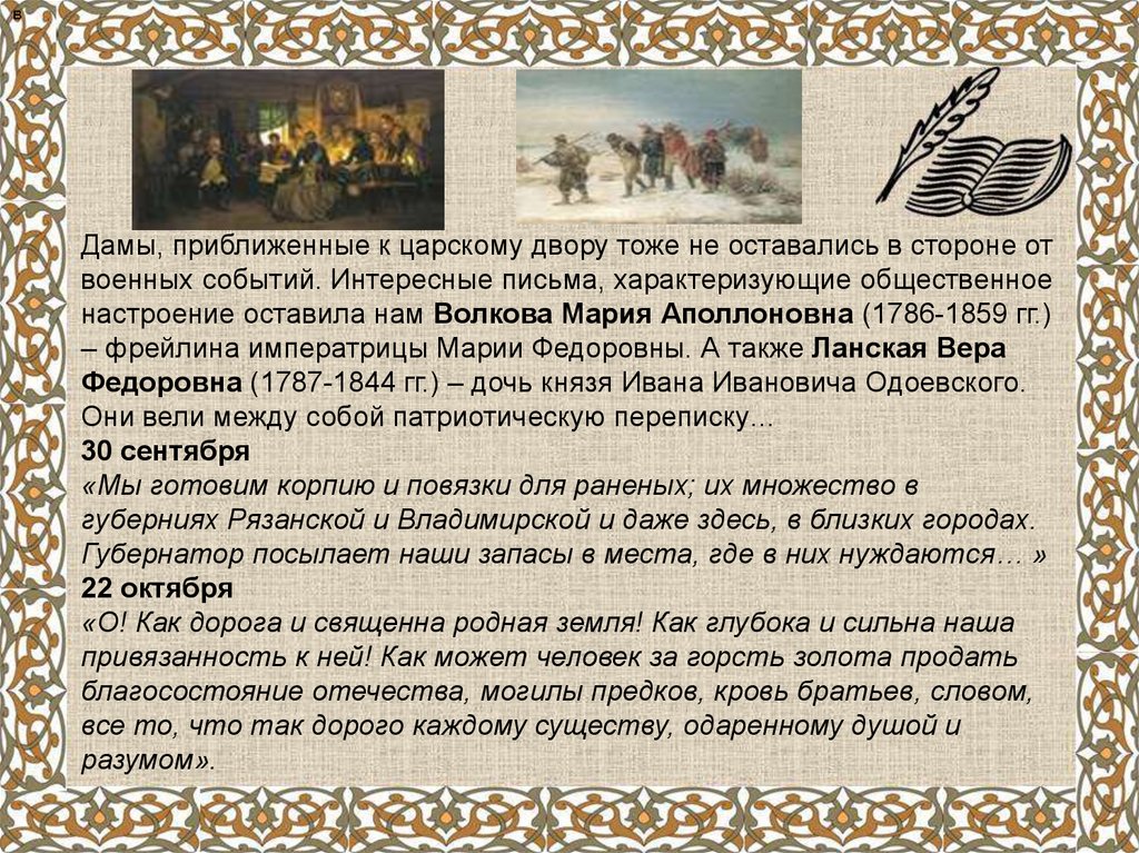настроение оставила нам Волкова Мария Аполлоновна (1786-1859 гг.)