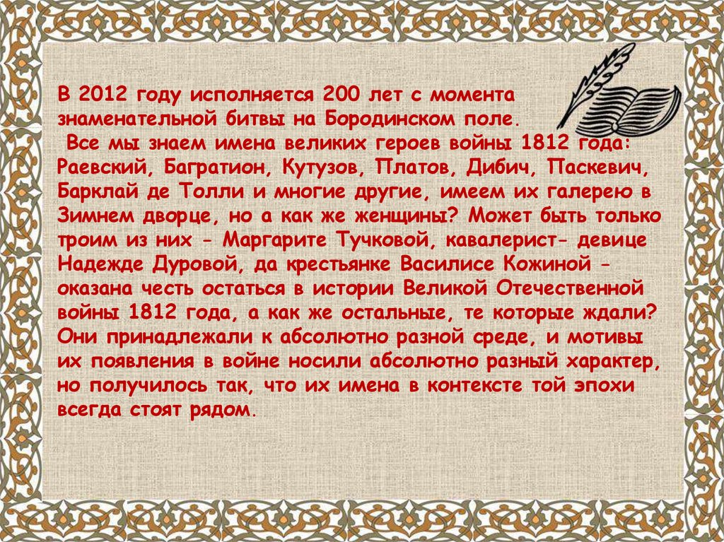 В 2012 году исполняется 200 лет с моментазнаменательной битвы на Бородинском поле.