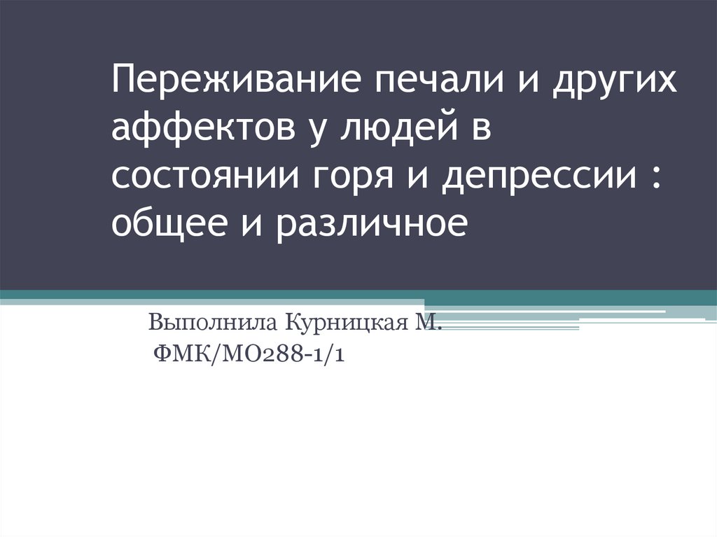 Переживание печали и других аффектов у людей в состоянии горя и депрессии