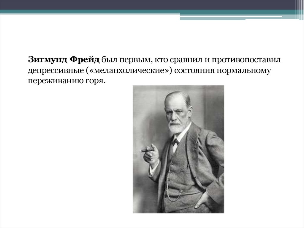 Зигмунд Фрейд был первым, кто сравнил и противопоставилдепрессивные («меланхолические») состояния нормальному