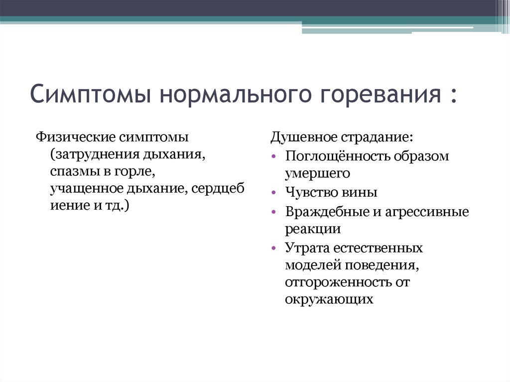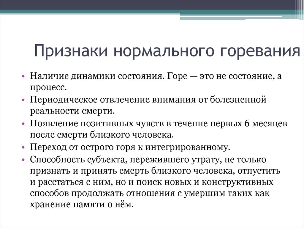 Признаки нормального горевания• Наличие динамики состояния. Горе — это не состояние, а