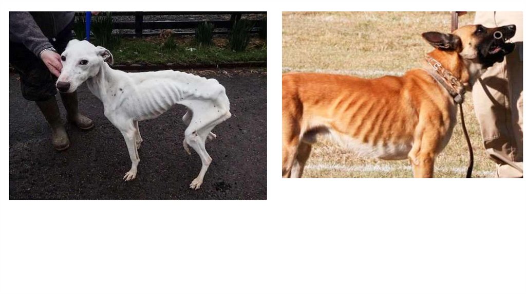 подтянут. Собака вялая, быстро устает. Как истощенная, так и