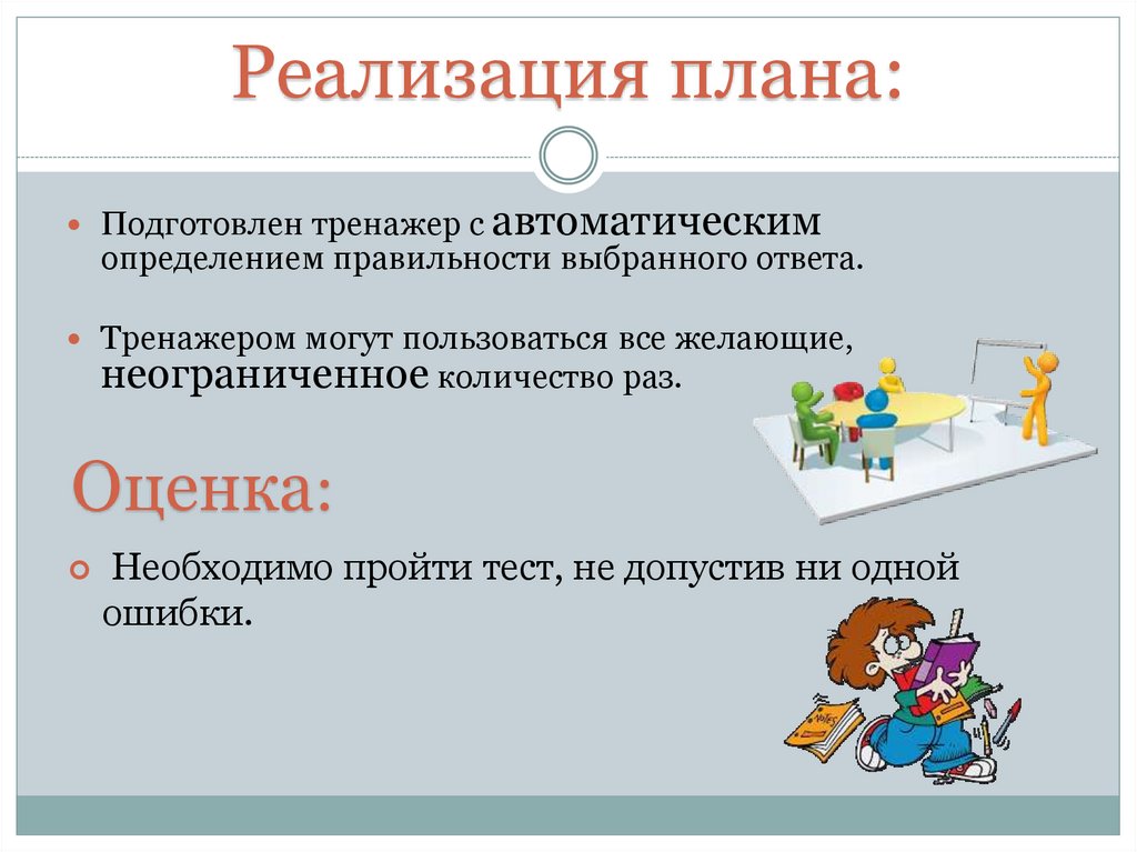 Реализация плана:Подготовлен тренажер с автоматическим