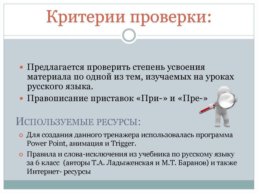 Критерии проверки:Предлагается проверить степень усвоения