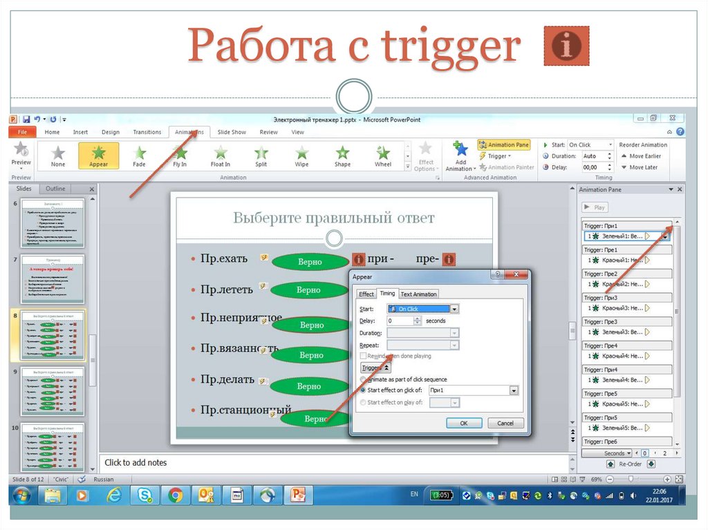 Power Point, анимация и Trigger.
