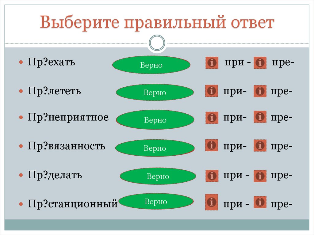 Электронный тренажер. Правописание приставок: при- и пре