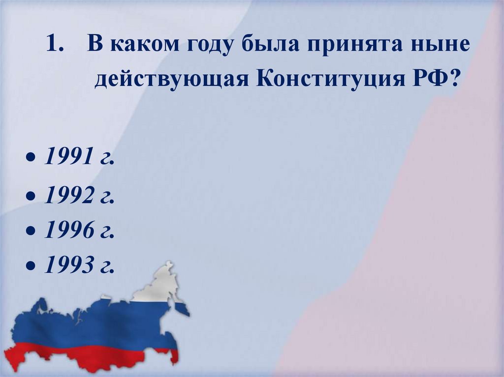 2. Ныне действующая КонституцияРоссийской Федерации принята: