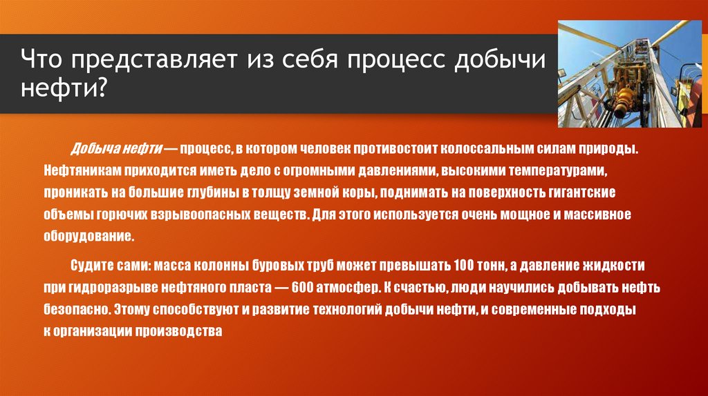 Добыча нефти — процесс, в котором человек противостоит колоссальным силам природы.
