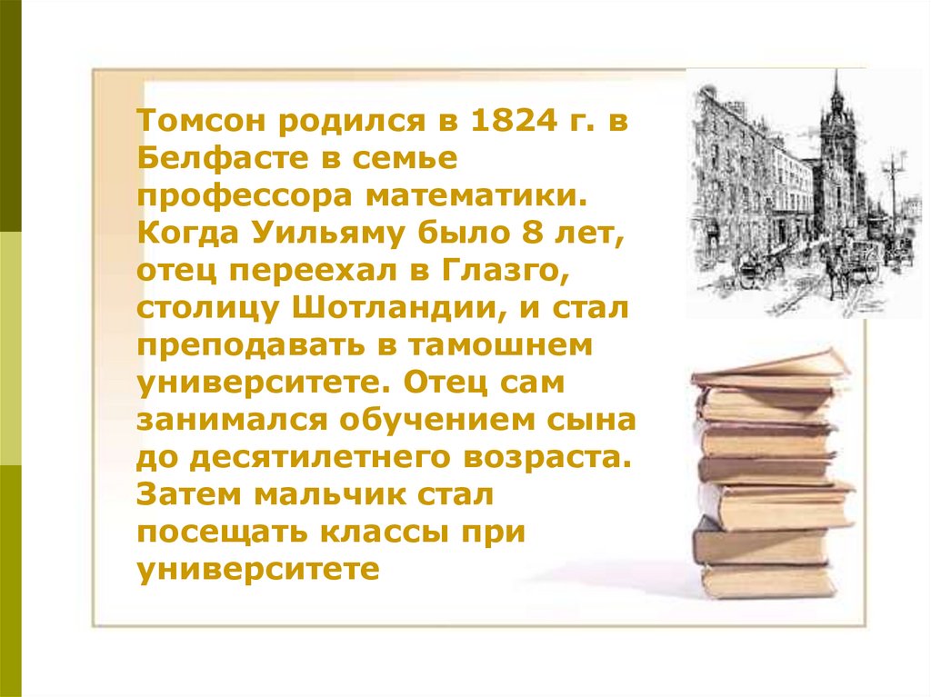 Томсон родился в 1824 г. вБелфасте в семье