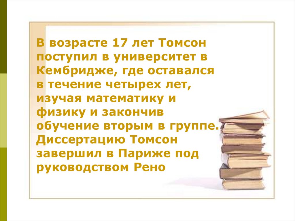 В возрасте 17 лет Томсонпоступил в университет в