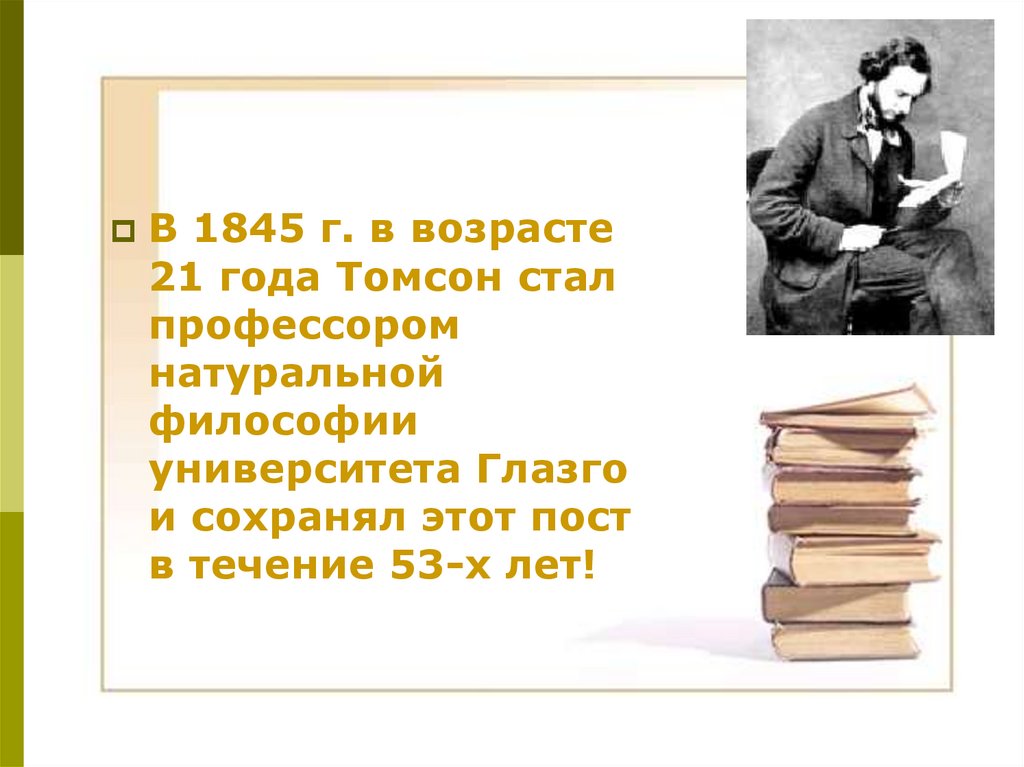 В 1845 г. в возрасте21 года Томсон стал