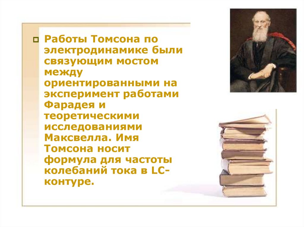 Работы Томсона поэлектродинамике были