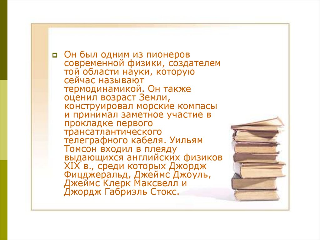 У. Томсон лорд Кельвин, его вклад в развитие физики