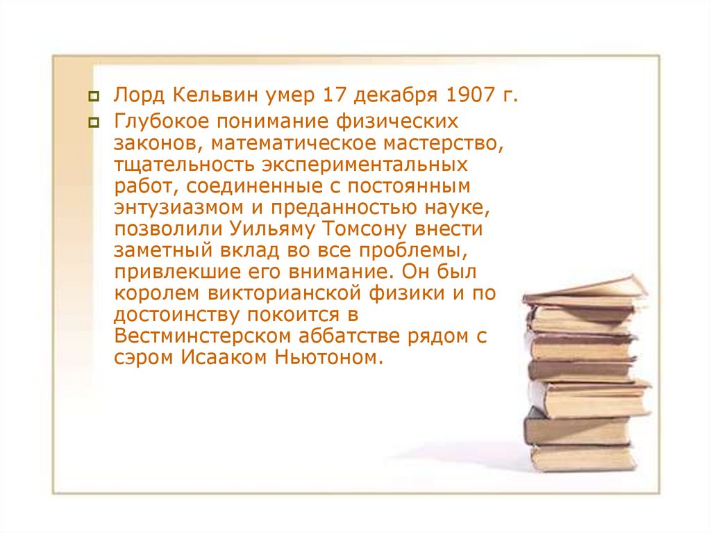 Лорд Кельвин умер 17 декабря 1907 г.Глубокое понимание физических