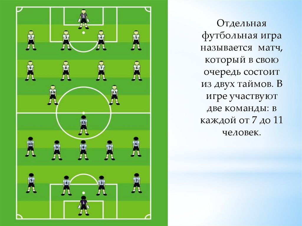 Один человек в команде (вратарь) может играть руками, его основнойзадачей является защита ворот.