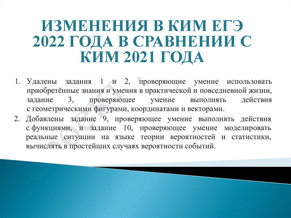Изменения в КИМ ЕГЭ 2022 года в сравнении с КИМ 2021 года