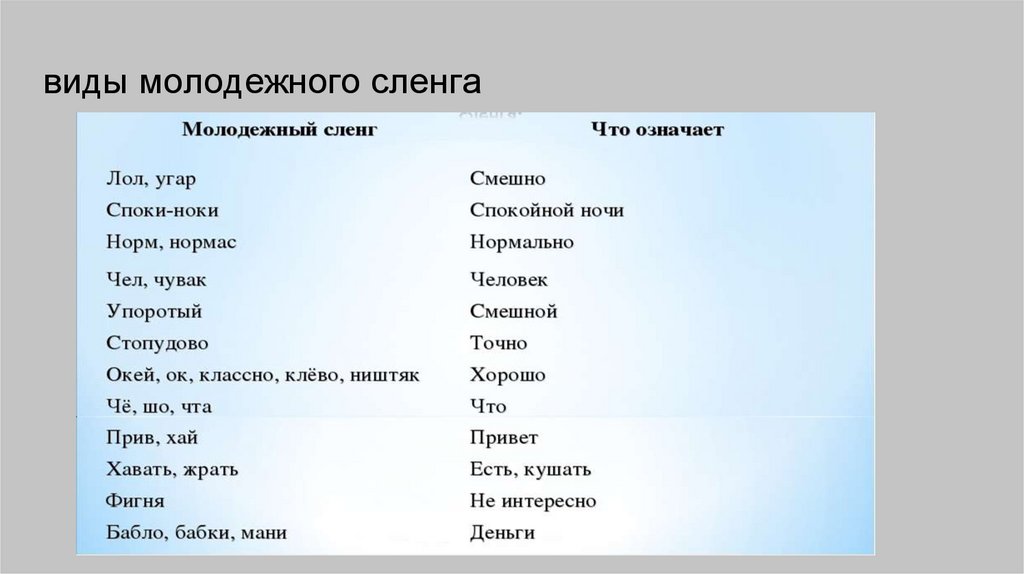 молодежный сленг Молодёжный сленг, как и любой другой, представляет собой только лексиконна фонетической и грамматической основе общенационального языка, и