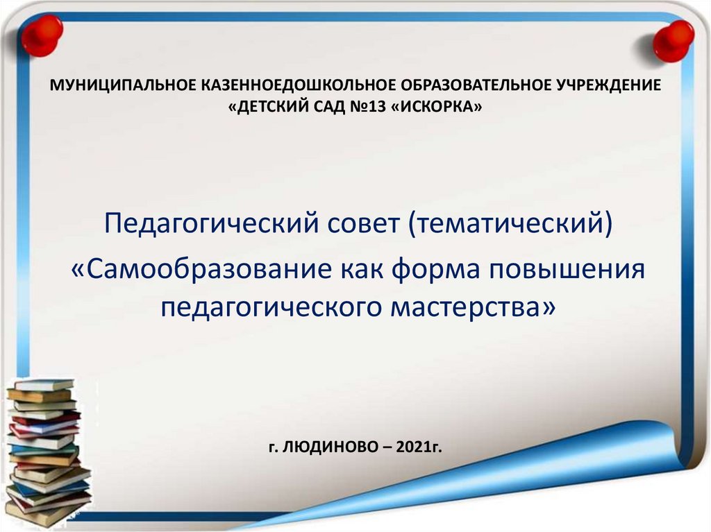 Педагогический совет (тематический) «Самообразование как форма повышения педагогического мастерства»