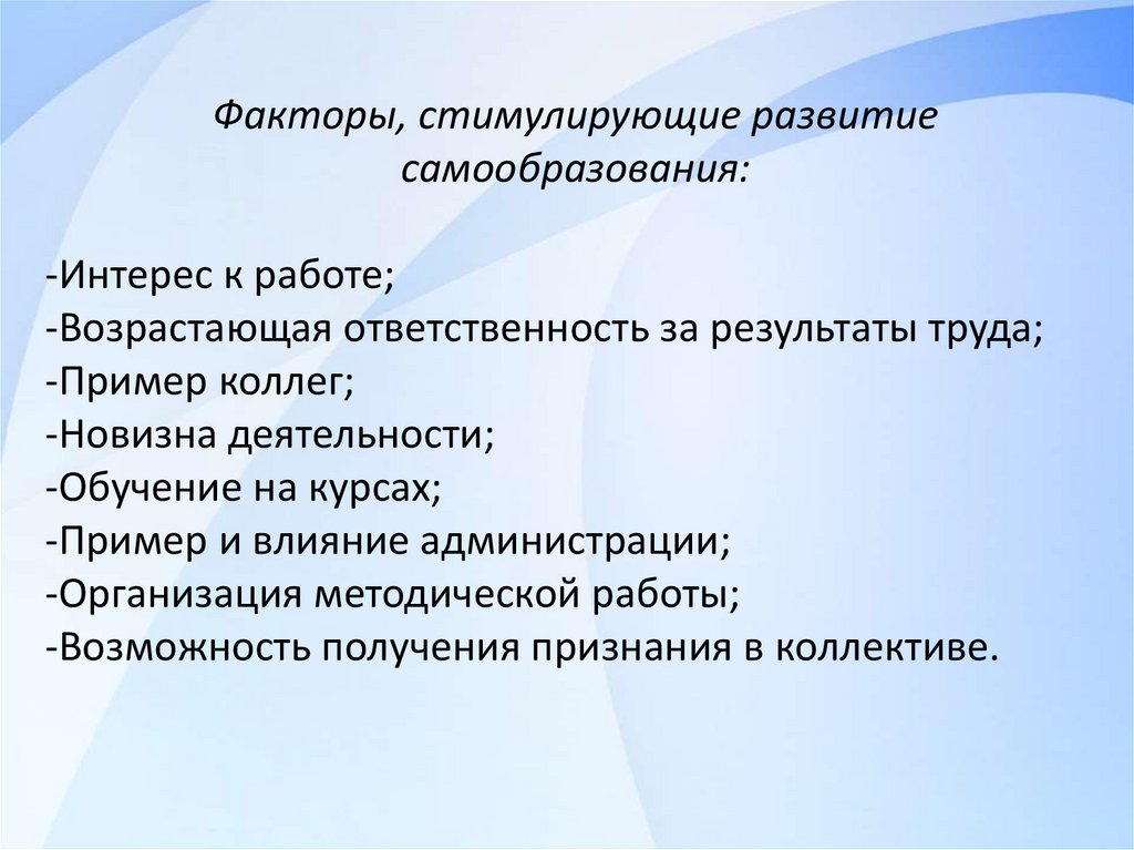 Факторы, стимулирующие развитиесамообразования: