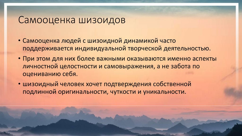 Самооценка шизоидов• Самооценка людей с шизоидной динамикой часто