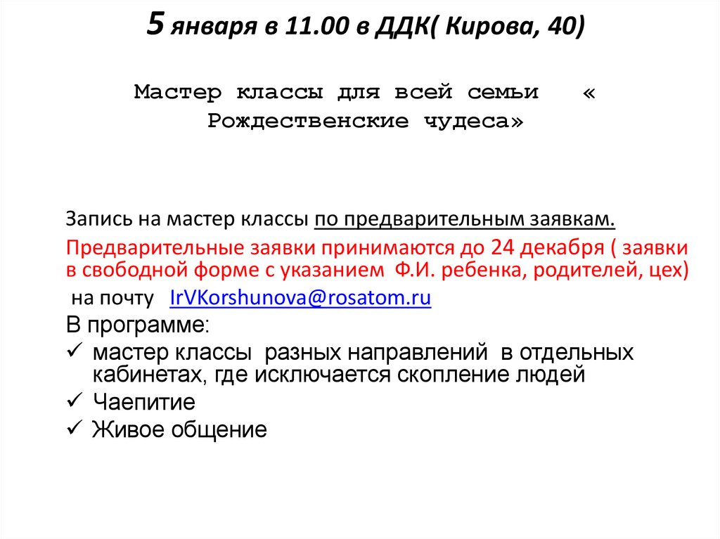 5 января в 11.00 в ДДК( Кирова, 40)Мастер классы для всей семьи