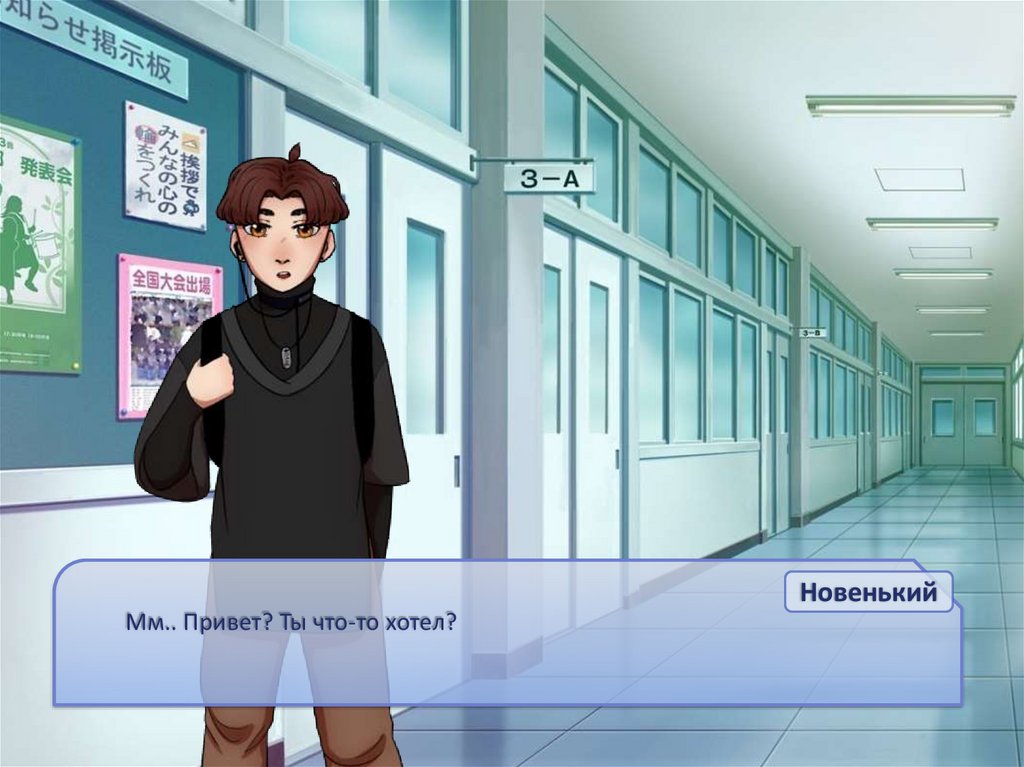 Достав телефон, вы ожидающе смотрите на новенького.23.