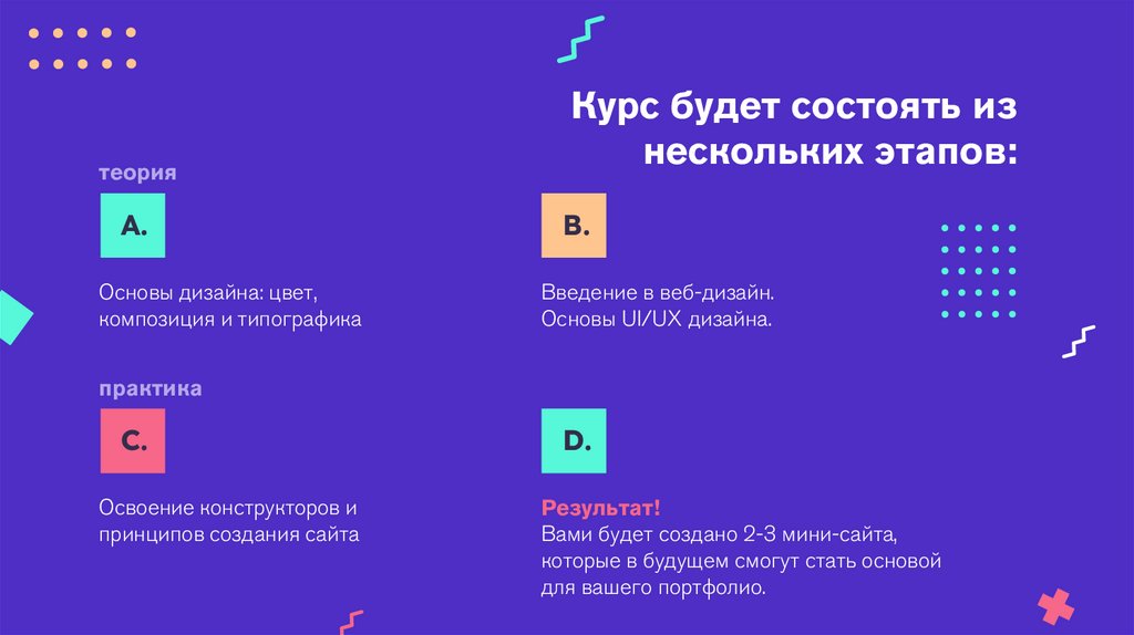В процессе прохождения курса вы получите базовые знания в сфере веб-дизайна.