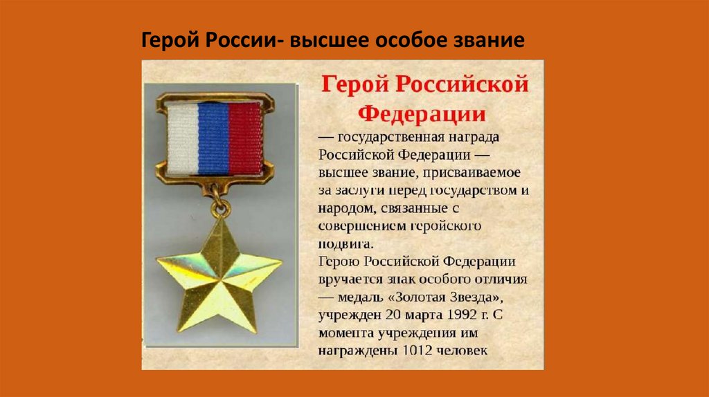 Герой России- высшее особое звание15.
