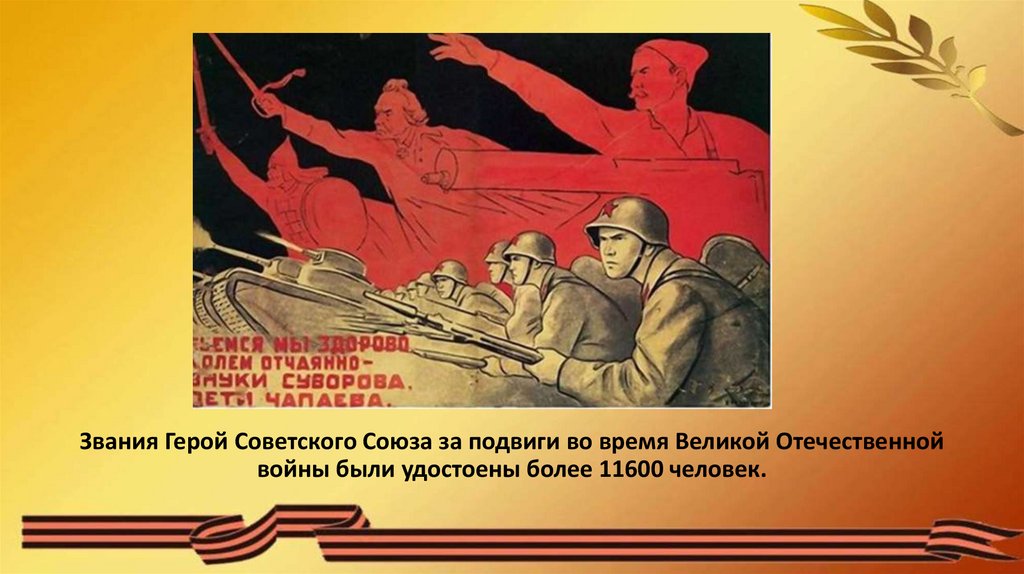 Звания Герой Советского Союза за подвиги во время Великой Отечественнойвойны были удостоены более 11600 человек.