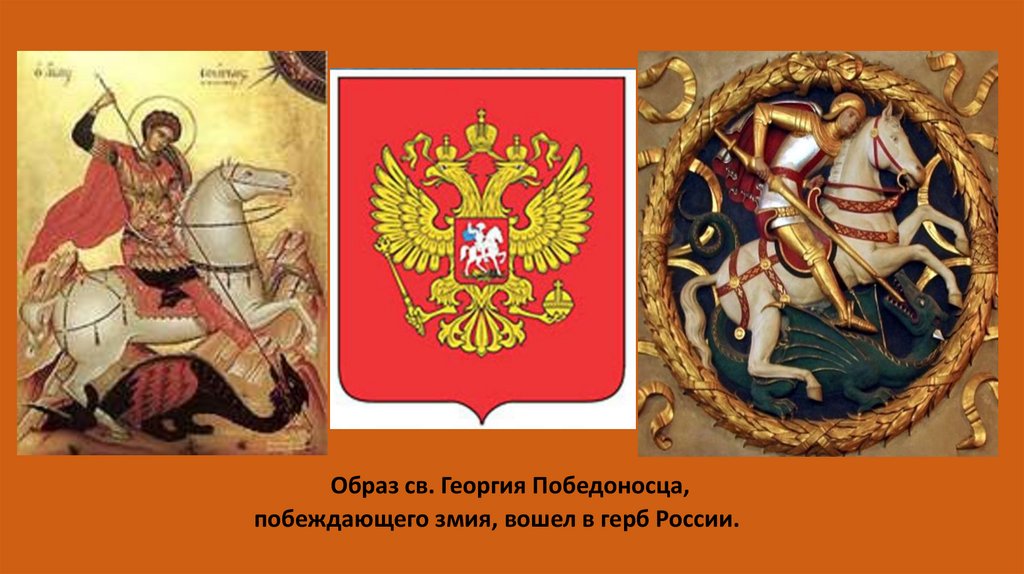 Образ св. Георгия Победоносца,побеждающего змия, вошел в герб России.