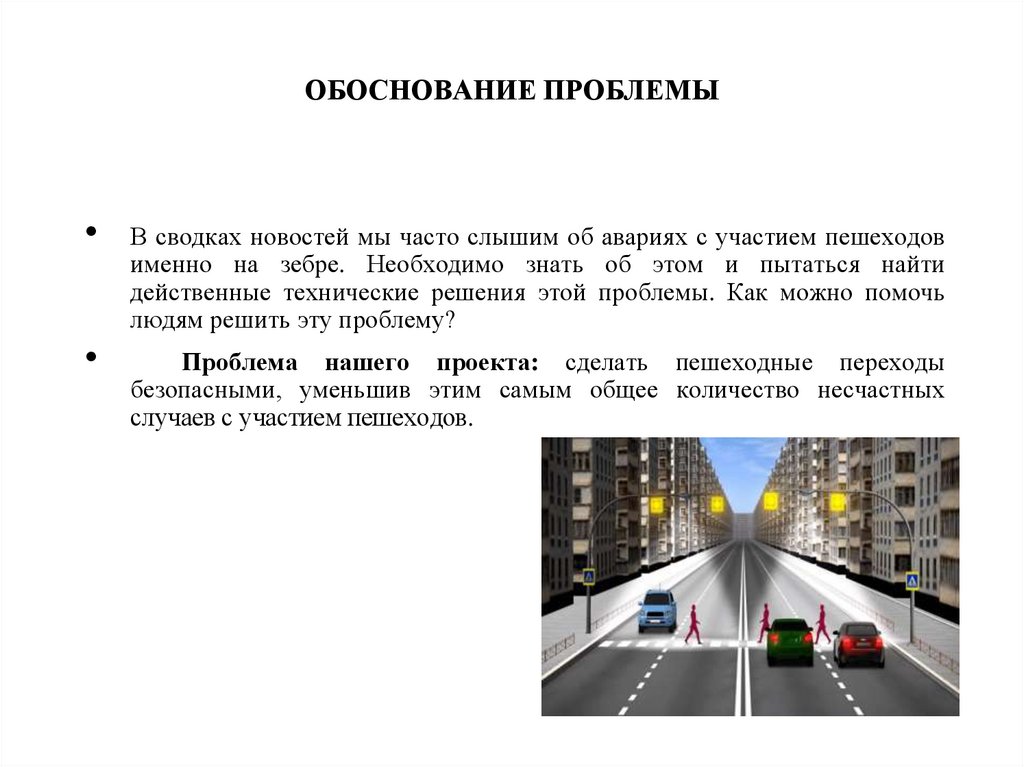 ОБОСНОВАНИЕ ПРОБЛЕМЫВ сводках новостей мы часто слышим об авариях с участием пешеходов