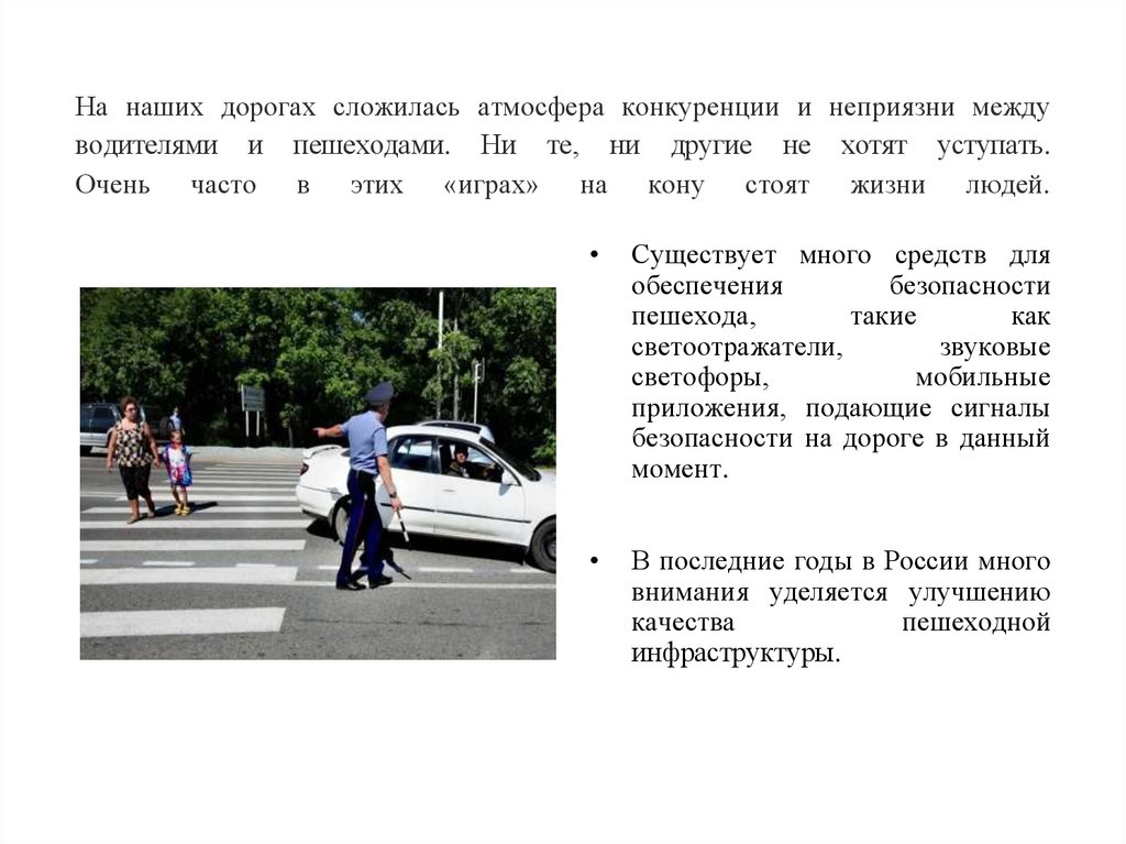 На наших дорогах сложилась атмосфера конкуренции и неприязни междуводителями и пешеходами. Ни те, ни другие не хотят уступать.