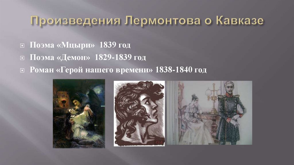 Поэма «Мцыри» 1839 годПоэма «Демон» 1829-1839 год
