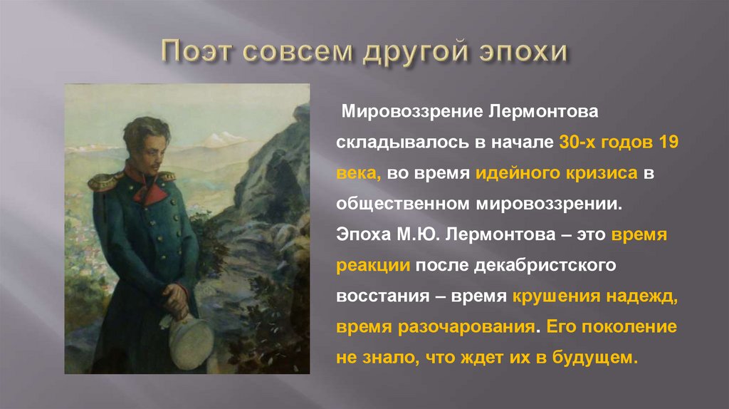 Эпоха М.Ю. Лермонтова – это время