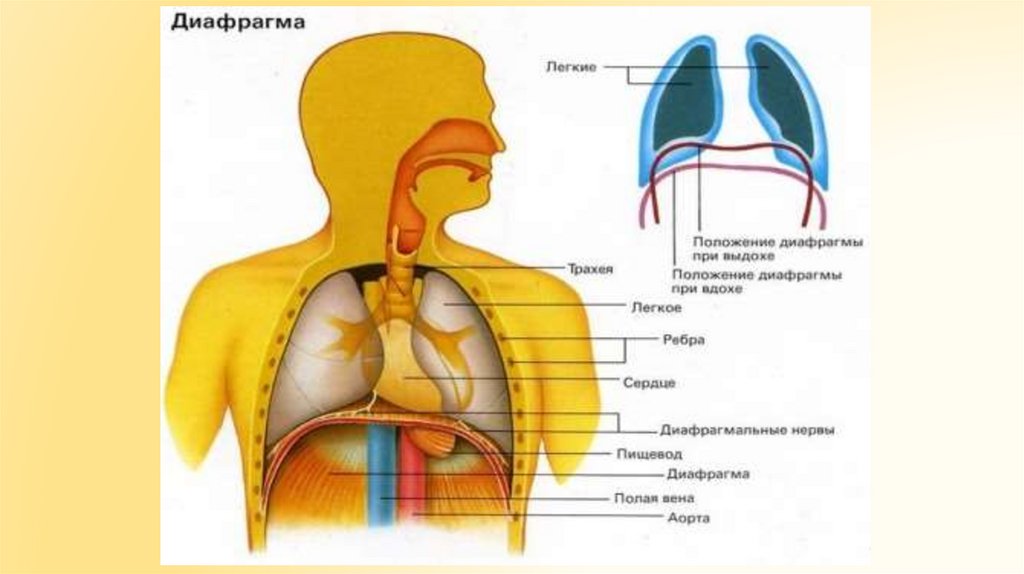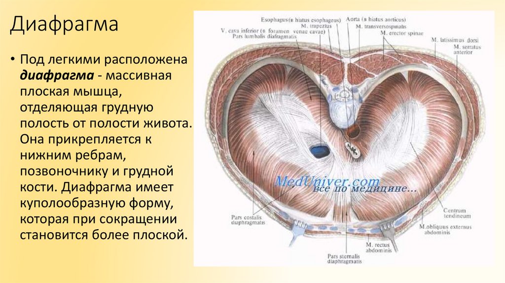 • уплощаясь при сокращении, она увеличивает объем грудной