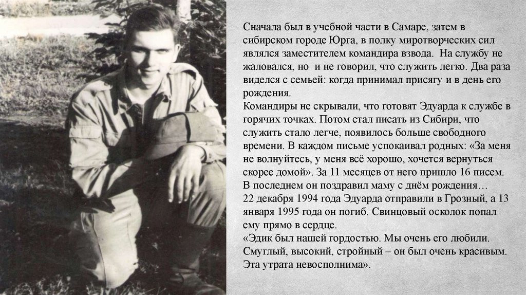 Командиры не скрывали, что готовят Эдуарда к службе в