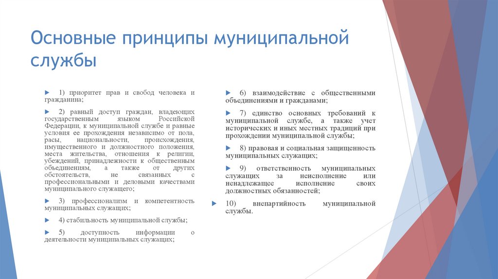 Основные принципы муниципальнойслужбы