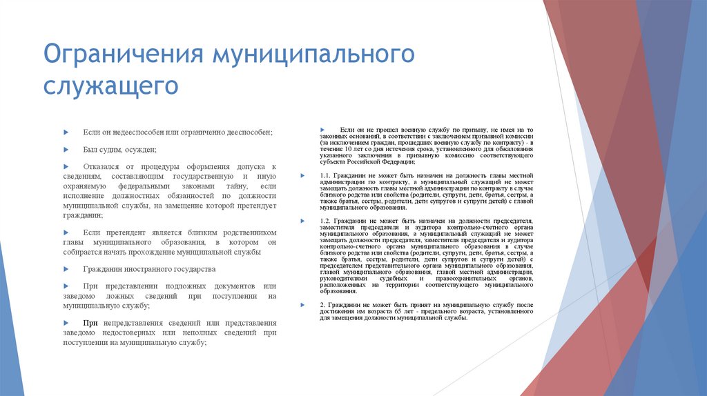 Ограничения муниципальногослужащего